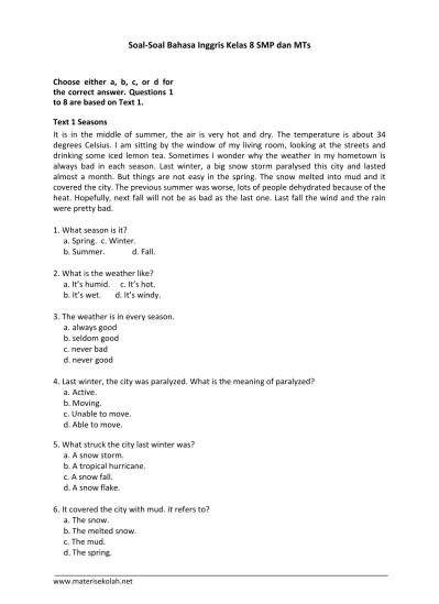 Contoh soal descriptive text essay kelas 7 rating.